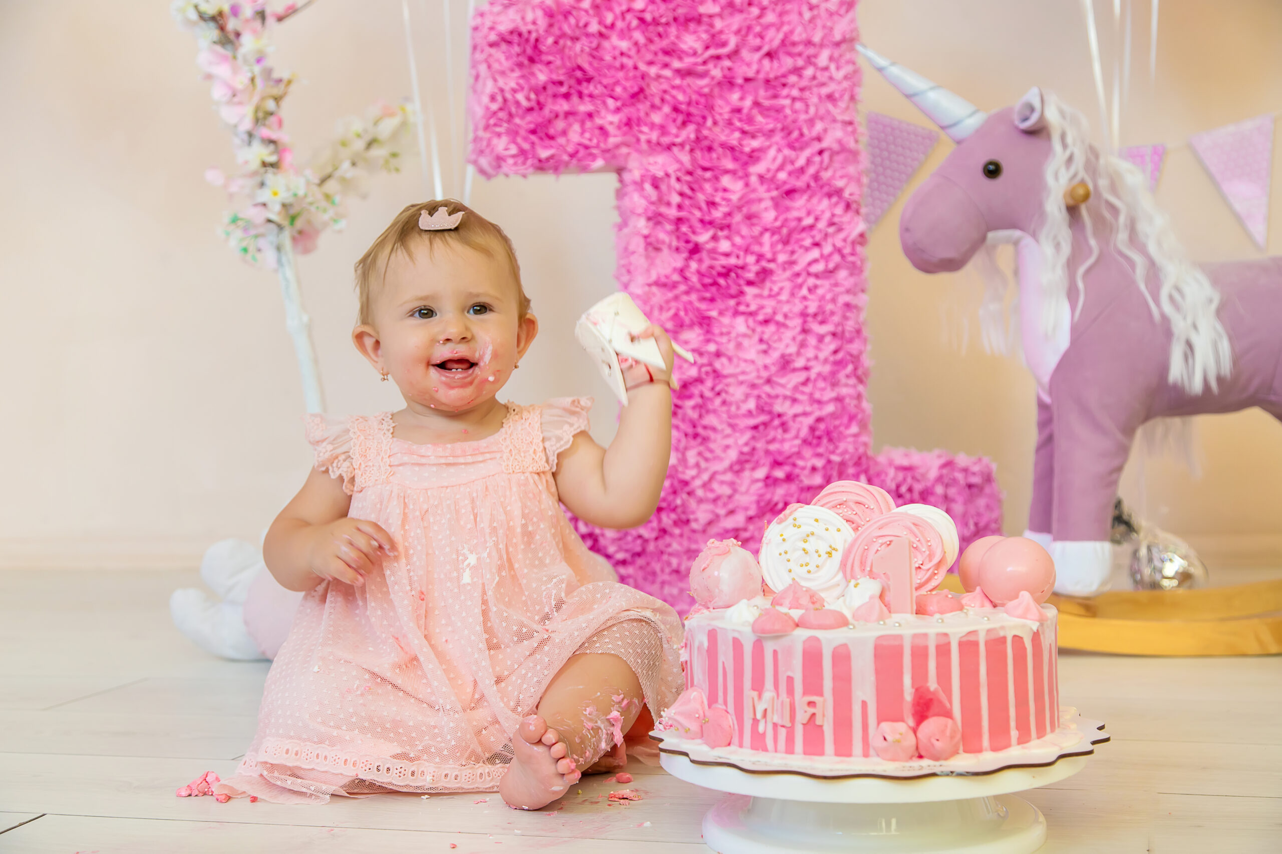 Classic piano setup for a refined theatre-inspired look Soft, neutral tones with floral accents for a dreamy feel Elegant “ONE” blocks to celebrate the milestone…